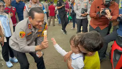“Selamat liburan ya (sambil memberikan cokelat dan mengusap kepala anak), udah makan belum?,” tanya Kapolda ke seorang anak di Ragunan, Sabtu (27/12/2025).
