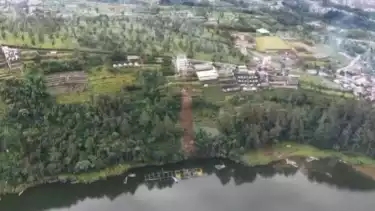 Di dalam video itu menunjukkan deretan bagunan villa di sekitar tebing dan sempadan danau.