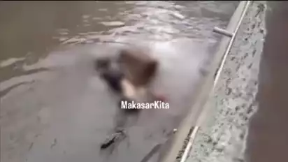Sementara itu terlihat mayat itu tersangkut di antara sampah kayu yang berada di tengah aliran sungai.