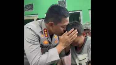 Kapolres kemudian berbicara dengan anak Sudrajat yang tampak masih SD sambil mengelus kepala bocah itu.