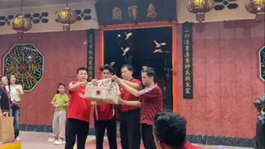 Sementara di luar Vihara, empat laki-laki berbaju merah tampak sedang bersiap untuk menerbangkan sekotak burung pipit.