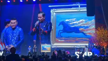 Diketahui, lukisan Kuda Api itu dilelang dalam acara acara Perayaan Imlek Partai Demokrat di Djakarta Theater, Jakarta Pusat, Rabu (18/2/2026).