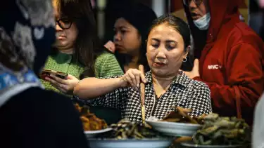 “Ini tahun kedua saya puasa di sini, karena kan kami berdua ini perantau ya. Saya dari Sumatera, teman saya dari Makassar. Jadi ini tahun kedua jajan di sini, tahun kemarin juga ke sini,” kata Adam saat ditemui di lokasi.