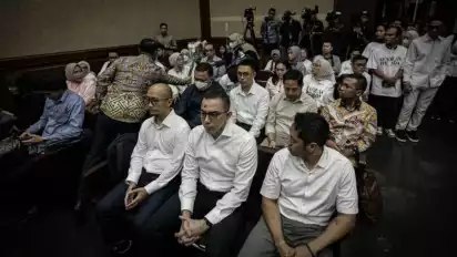 Ketiga terdakwa mengikuti jalannya sidang pembacaan putusan di Pengadilan Tipikor Jakarta dengan pengawalan ketat.