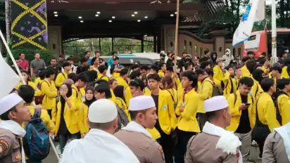 Berdasarkan pantauan mereka berkumpul di Jalan Trunojoyo, mayoritas dari mereka mengenakan almamater berwarna kuning.