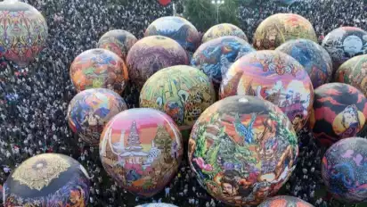 Sebanyak 44 balon udara raksasa dengan beragam corak unik, mulai dari tokoh pewayangan hingga karakter kartun, berhasil menarik perhatian ribuan wisatawan yang memadati lokasi tersebut dalam gelaran Festival Mudik Balon Udara.