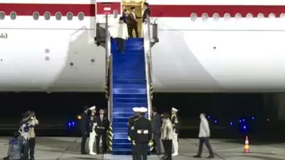 Prabowo pun langsung menyalami satu per satu pejabat yang menyambut kedatangan dirinya, dimulai dari Wapres Gibran, kemudian Mensesneg Prasetyo, Panglima TNI, Kapolri, dan Kepala BIN. Presiden kemudian menyalami jajaran pejabat yang berada di barisan belakang, yaitu Direktur Utama (Dirut) Garuda Indonesia Glenny Kairupan, dan ada pula Komandan Pasukan Pengamanan Presiden (Danpaspampres) Mayjen TNI Edwin Adrian Sumantha.