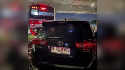 Jakarta, tvOnenews.com - Sebuah mobil jenis Innova Reborn mengalami rusak parah usai tertemper commuterline (KRL) di Jalan Soleh Iskandar, Kelurahan Kedung Badak, Kecamatan Tanah Sareal, Kota Bogor, pada Jumat (3/4/2026) sekira jam 04.00 WIB.