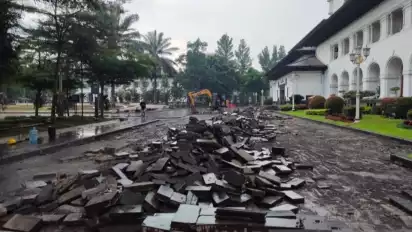 Pemprov Jawa Barat sesuai arahan Gubernur Dedi Mulyadi telah memulai proyek revitalisasi plaza bagian depan Gedung Sate dengan alokasi anggaran Rp15 miliar.