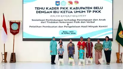 Penegasan tersebut disampaikan Tri saat menghadiri Temu Kader PKK Kabupaten Belu bersama Ibu Ketum TP PKK dalam rangka kegiatan “Sosialisasi Perlindungan terhadap Perempuan dan Anak dari Tindakan Kekerasan Fisik dan Verbal dan Pelatihan Pembuatan dan Pengelolaan Hasil Minyak Kemiri”.