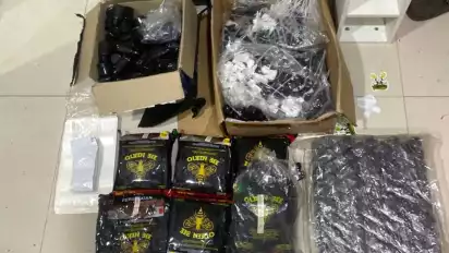 "Menemukan barang bukti berupa tembakau sintetis siap edar, ganja, bibit tembakau sintetis, hingga sejumlah peralatan produksi seperti kompor listrik, bejana, botol alkohol, dan alat semprot," kata dia dalam keterangannya, Minggu (19/4/2026).