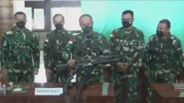 "Kemudian barang bukti yang diamankan dari penangkapan tersebut adalah berupa senjata M-16 dua pucuk dan satu pucuk GLM senjata pelontar granat. Kemudaian ada senjata Double Luk satu pucuk, kemudian senjata laras panjang rakitan dua pucuk. Dan ini senjata semua bisa berfungsi dengan baik. Ada amunisi kaliber 5.56 35 butir dan granatnya ada dua butir dan bendera bintang kejora satu buah, " jelas Ignatius.