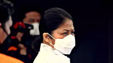Putri Candrawathi saat menghadiri rekonstruksi kasus pembunuhan Brigadir J, Selasa (30/8/2022). (Tvonenews.com/Julio Trisaputra)