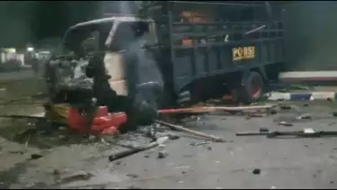 Selain korban meninggal dunia, tercatat ada 13 unit kendaraan yang mengalami kerusakan, 10 di antaranya merupakan kendaraan dinas Polri.