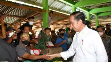 Presiden Jokowi Bagi-Bagi Bansos di Pasar Muntok Bangka Barat