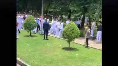 Terlihat dalam video, antartaruna saling mendorong dengan mengenakan seragam lengkap saat terjadinya keributan. (ant/ito)