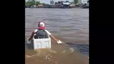 Oki, Sumsel – Sebuah video yang memperlihatkan seorang anak laki-laki dengan santai dan tanpa rasa takut, menyebrangi sungai Riting yang berada di Desa kuala duabelas, Kecamatan Tulung Selapan, Kabupaten Ogan Komering Ilir, Sumatera Selatan, dengan menggunakan kardus berbahan 'Styrofoam', saat pergi ke sekolah.
