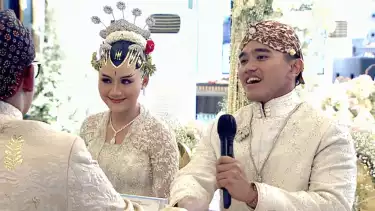 Prosesi berikutnya dilanjutkan pembacaan doa serta penandatanganan buku dan akta nikah. Sesekali Kaesang menunjukkan ekspresi bahagianya dengan bercanda ke arah kamera.
