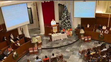 Jakarta, tvOnenews.com - Suasana khidmad tergambar dari ruang ibadah utama Gereja Immanuel, Gambir, Jakarta Pusat pada Minggu (25/12/2022).