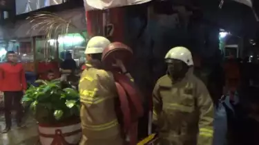 Tim Pemadam Kebakaran Jakarta Selatan sedang Berjibaku Memadamkan Api di Lorong Sempit, Gang Amal Satu, Kelurahan Pela Mampang, Mampang Prapatan, Jakarta Selatan, Senin (26/12/2022) malam.Â