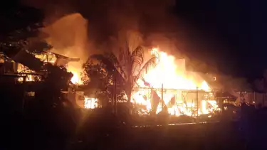 Selain itu, tampak juga puluhan rumah luluh lantak atau roboh dikarenakan api yang marak membakar rumah tersebut. Bahkan, tampak dari kejauhan kayu-kayu puluhan rumah itu roboh serta ada yang hampir rata dengan tanah.Â