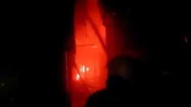 Tampak Api Berkobar dari Sebelah Gang Amal Satu, Kelurahan Pela Mampang, Mampang Prapatan, Jakarta Selatan, Senin (26/12/2022) malam.