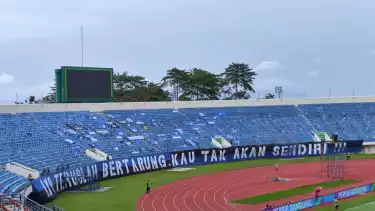 Puluhan spanduk dengan berbagai ukuran dipasang di tiga sisi tribun dari mulai utara, barat hingga selatan.