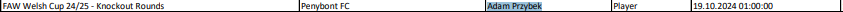 Dia mendapat sanksi larangan bertanding sebanyak satu kali saat masih memperkuat Penybont FC dalam ajang Wels Cup 2024-2025.