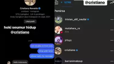 tvOnenews.com - Megabintang Al-Nassr, Cristiano Ronaldo membuat gempar jaga media sosial Indonesia setelah membalas direct message (DM) Instagram seorang selebgram yang juga mantan kekasih Kekeyi, Rio Ramdhan.