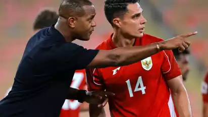 Pelatih Timnas Indonesia Patrick Kluivert dengan Joey Pelupessy