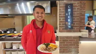 1. Marselino terlihat mengambil sayuran lengkap dengan karbohidrat dan protein.