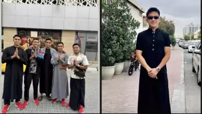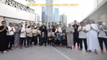 Mereka menggunakan baju koko serta menenteng sajadah untuk sama-sama melaksanakan Sholat Ied bersama warga Indonesia lainnya yang tinggal di Dubai.