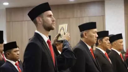 Tanpa ribut-ribut, Maarten Paes memberikan kejutan dengan mengikuti Pengambilan Sumpah Janji Setia di Kantor Wilayah Kemenkumham DKI Jakarta, Selasa (30/4/2024).Â