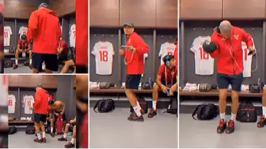 Ragnar yang tampil dengan potongan rambut plontos terlihat sedang asik berjoget di dalam ruang ganti pemain sebelum laga.