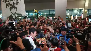 Di bandara, ribuan suporter Indonesia hadir di terminal bandara untuk mengucapkan selamat tinggal kepada pelatih Shin Tae-yong sebagai penghormatan kepada ahli strategi Korea tersebut.