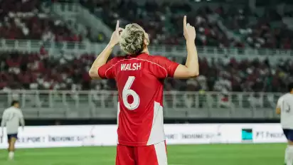 Sandy Walsh terlihat memberikan reaksi yang menjadi ciri khasnya. Hal ini menunjukkan bahwa pemain Buriram United itu sangat antusias jelang Kualifikasi Piala Dunia 2026.