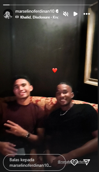Hal tersebut dibagikan oleh Marselino Ferdinan di akun Instagram pribadinya pada Senin (30/9/2025). Dia tampak sedang berfoto bersama Ronaldo Kwateh yang merupakan sahabat dekatnya.
