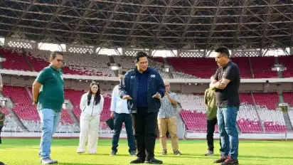 Jakarta, tvOnenews.com - Menteri Pemuda dan Olahraga RI Erick Thohir turun langsung untuk meninjau kondisi lapangan di Stadion Gelora Bung Karno, Jakarta. Dia memastikan kesiapan PSSI dalam menggelar FIFA Series.