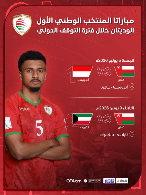 Oman tidak hanya menghadapi Indonesia saja dalam rangkaian FIFA Matchday Juni 2026 ini. Setelah melawat ke Jakarta, Oman dijadwalkan menghadapi Kuwait pada Selasa, 9 Juni 2026 di Bangkok.