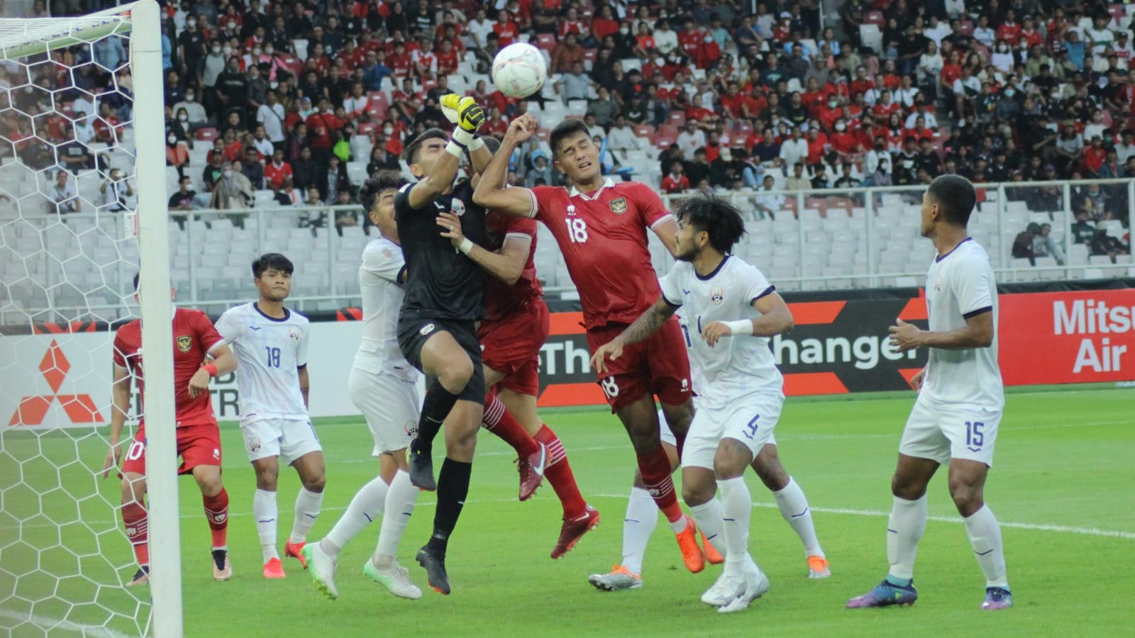 Duel pemain Timnas Indonesia vs Timnas Kamboja, di Stadion Gelora Bung Karno, Senayan, Jakarta Pusat, Jumat (23/12/2022). Foto: Tvonenews/Julio