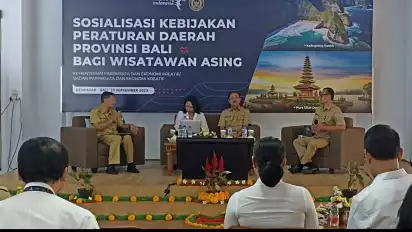 Hal tersebut diungkapkan oleh Kadis Pariwisata Provinsi Bali Tjok Bagus Pemayun di acara Sosialisasi Kebijakn Pemerintah Daerah Provinsi Bali Bagi Wisatwan Asing yang digelar di Kantor Dinas Pariwisata Provinsi Bali, Senin (25/9).