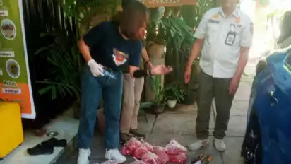 Petugas Satpol PP Provinsi Bali, menyita 56 kilogram daging anjing mentah dari tiga pedagang saat melakukan sidak di wilayah Kabupaten Jembrana dan Kabupaten Buleleng, Bali.