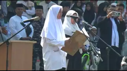Cilegon, tvOnenews.com - Ribuan santri yang tergabung dari puluhan Pondok Pesantren yang berada di wilayah Kota Cilegon, Banten, mengikuti upacara memeringati Hari Santri Nasional yang ke 10, bertempat di alun-alun Kota Cilegon, Selasa (22/10/2024).