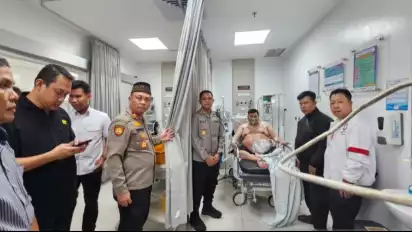 Kapolres Tangerang Selatan (Tangsel), AKBP Boy Jumalolo menjenguk korban penusukan oleh kelompok penagih utang di Tangerang, Banten.