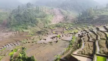 Kepala Desa Nangerang, Muhamad Nandar mengatakan, selain menimbun hektaran pesawahan longsor juga nyaris menimbun sejumlah petani yang sedang beraktivitas di pesawahan.