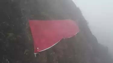 Tim pemasang Bendera Merah Putih raksasa lompati tebing gunung batu hanya menggunakan tali.