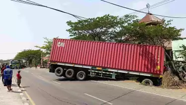 Truk Kontainer Masuk Parit di Jalur Pantura Pangenan Cirebon, Sopir Ngantuk