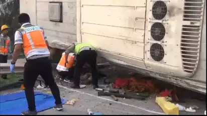 "Saat memasuki belokan menuju pintu keluar Cikampek bus hilang kendali lalu menabrak pembatas jalan hingga kendaraan terguling dalam posisi miring," kata Kasat Lantas Polres Purwakarta Dadang Supriadi, Jumat (15/12/2023)