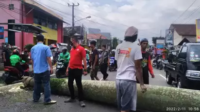"Sempat memacetkan jalan tersebut, namun petugas dengan cepat bisa memindahkan pohon tersebut ke tepian, supaya arus lalu lintas kembali normal, sementara pohon tumbang tersebut langsung di potong dan diangkut oleh dinas terkait," ungkapnya. (Rizki Gustana/act)