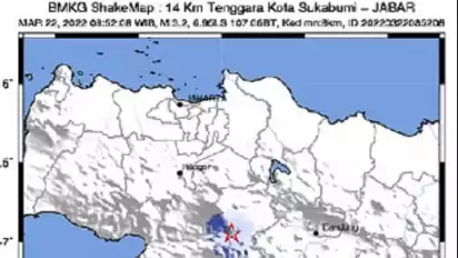 Sementara itu Kepala Balai Besar Meteorologi Klimatologi dan Geofisika (BBMKG) Wilayah II Tangerang, Hartanto dalam keterangan tertulisnya menyebutkan bahwa gempa yang terjadi pada Selasa, 22 Maret 2022 berkekuatan 3,2 magnitudo yang episenternya 14 km tenggara Kota Sukabumi dengan kedalaman 8 km, tidak berpotensi tsunami.